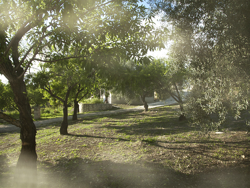 di circa 1500 mq dove la vegetazione tipica del luogo è composta da alberi di carrubo, alberi da frutto, ulivi tutte circondate da roseti di circa 50 varietà.